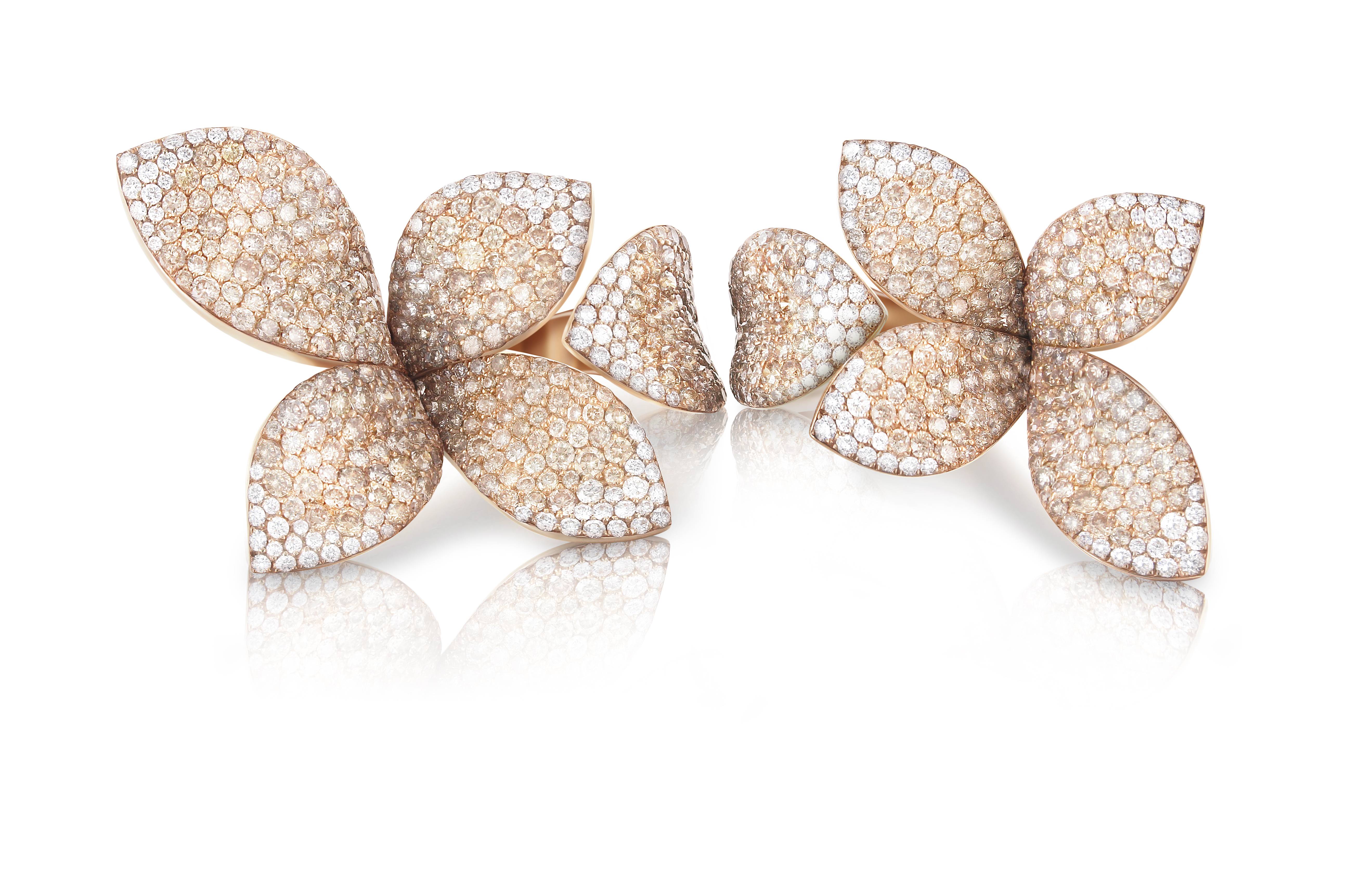 Giardini Segreti is a very new collection that we presented in Las Vegas. People fell in love with it, due to the different ways a person can wear the rings, dressing the hands in an unusual way. They are intriguing and offer a feminine way to give every woman the chance to create her own garden, with the union of two or more rings creating continuous secret shapes.